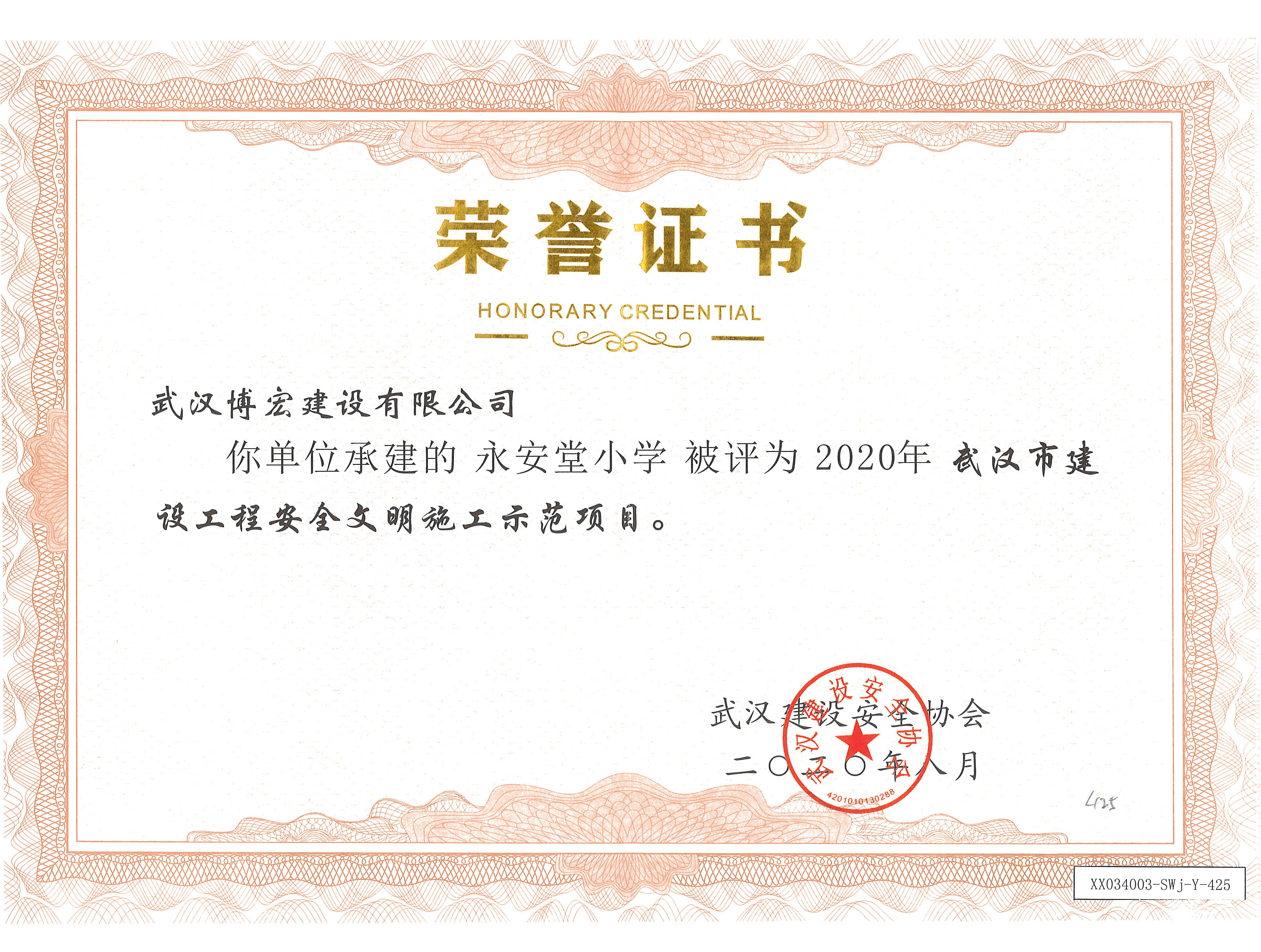 2020年武漢市建設(shè)工程安全文明施工示范項(xiàng)目(永安堂小學(xué))