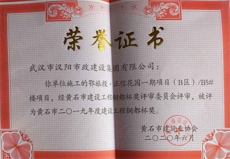 2019年度建設(shè)工程銅都杯獎(jiǎng)(鄂旅投·正信花園一期項(xiàng)目(B區(qū))B5#樓項(xiàng)目項(xiàng)目