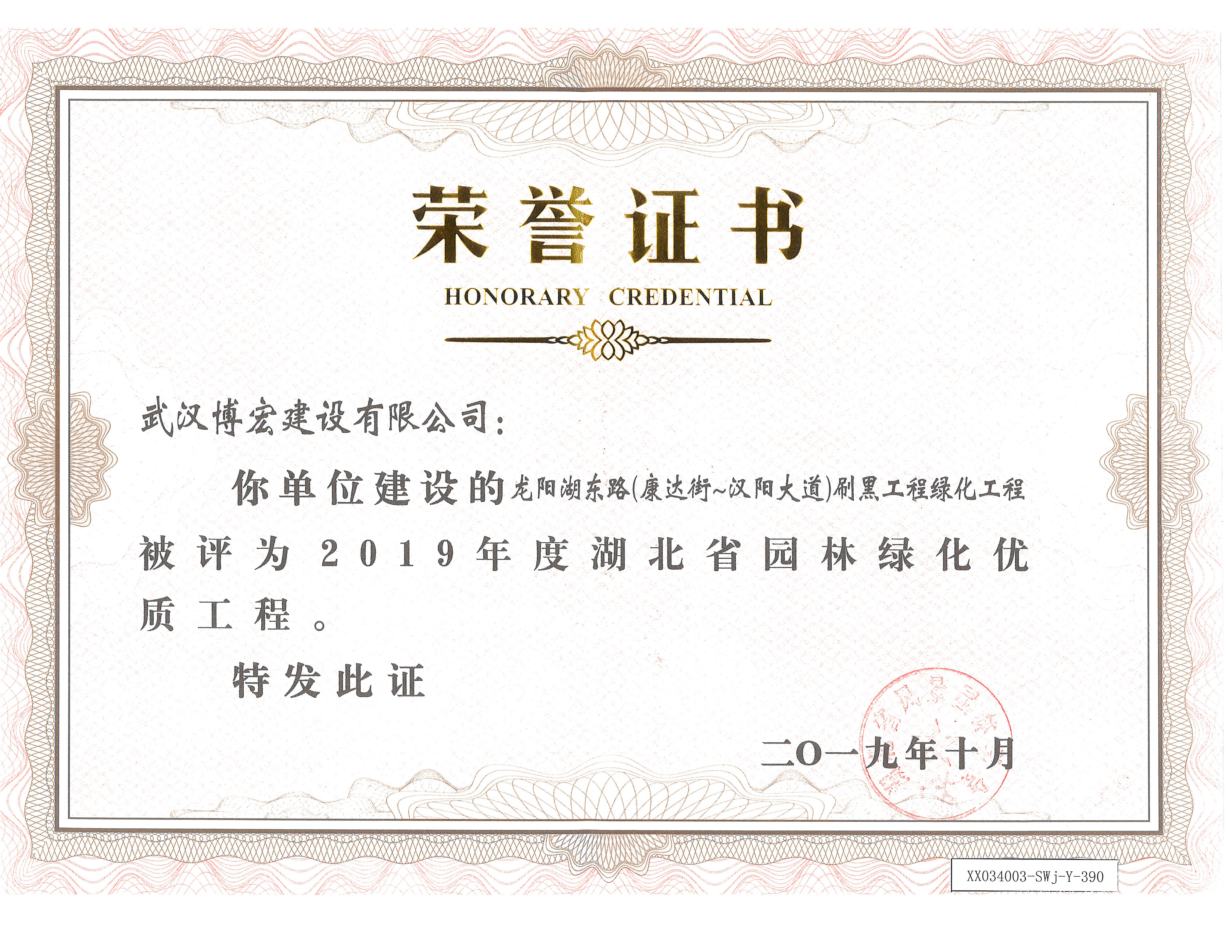 2020湖北省城市園林綠化優(yōu)質(zhì)工程金獎(jiǎng)獎(jiǎng)狀