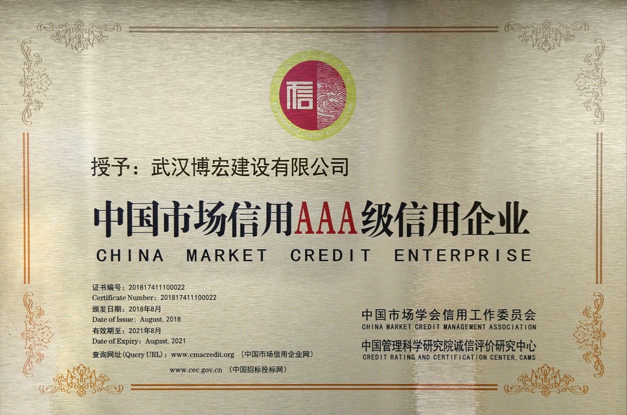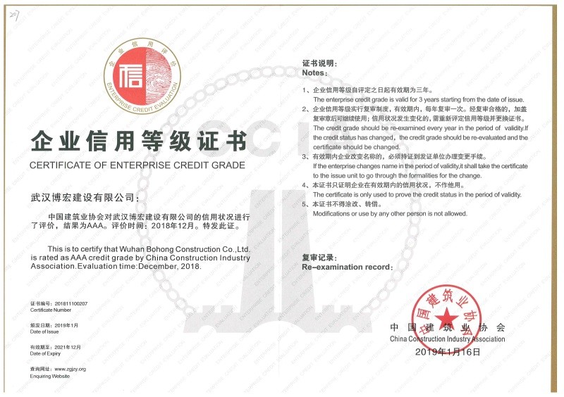 武漢建筑業(yè)信用企業(yè)等級(jí)證書