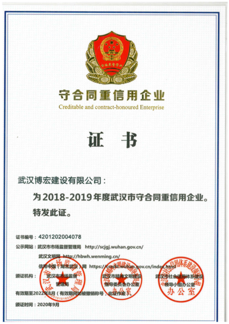 2018-2019年度武漢市守合同重信用企業(yè)
