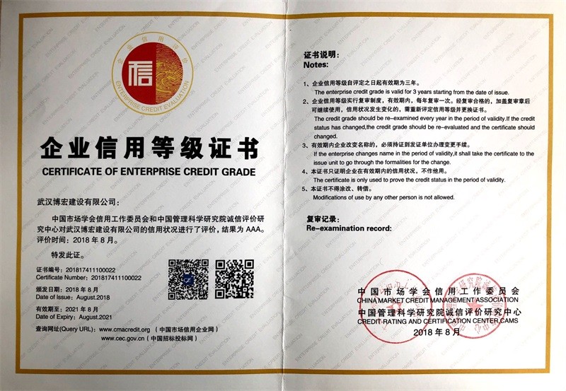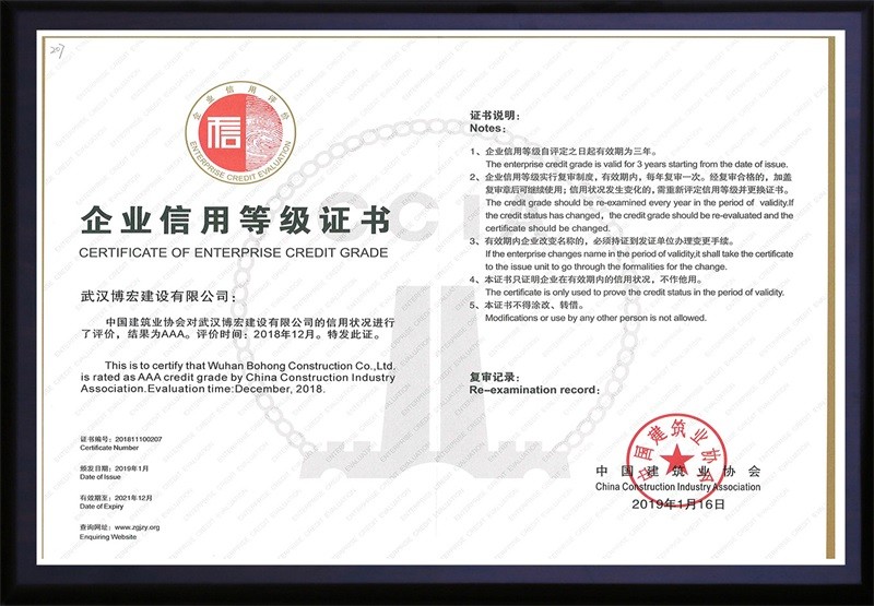 中國(guó)建筑協(xié)會(huì)3A信用等級(jí)證書(shū)(2019年1月)