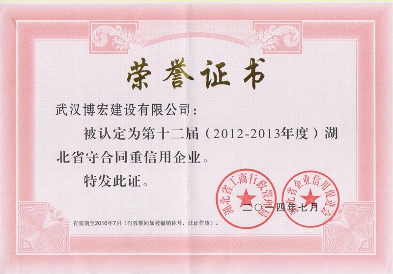 2012-2013年度湖北省守合同重信用企業(yè)