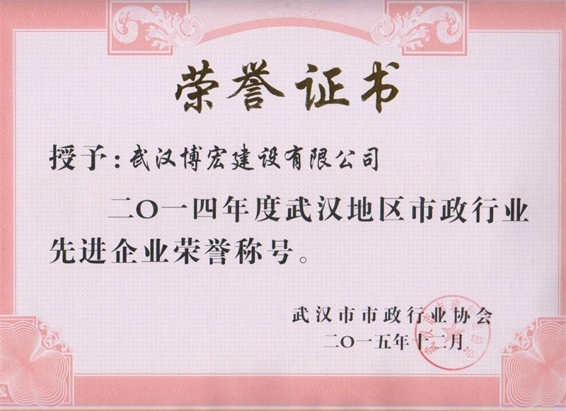 2014年度武漢地區(qū)市政行業(yè)先進(jìn)企業(yè)