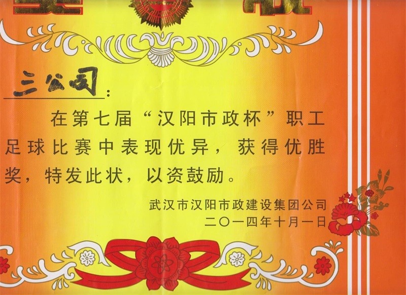 2014年度第七屆漢陽市政杯職工足球比賽優(yōu)勝獎(jiǎng)
