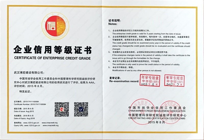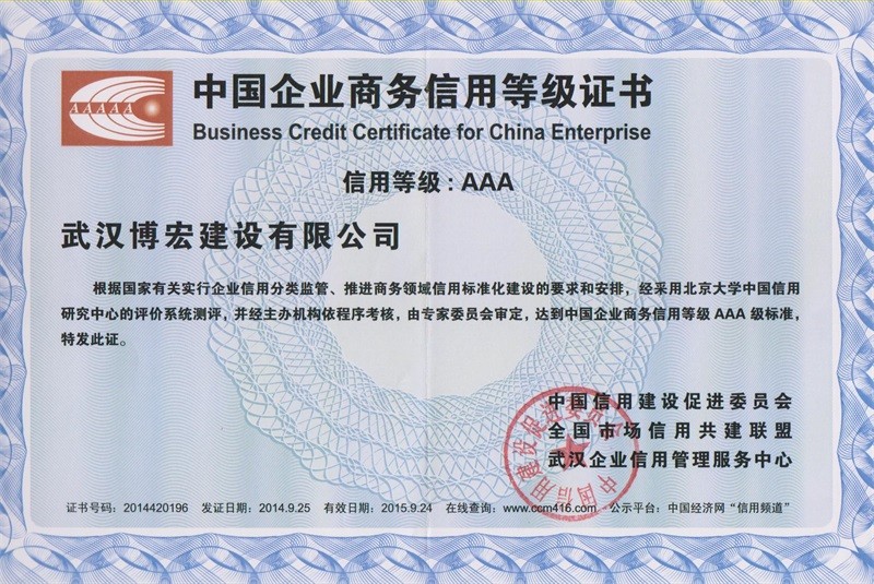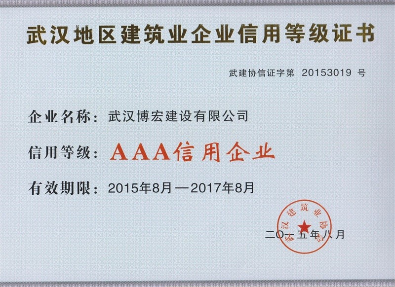 武漢地區(qū)建筑業(yè)企業(yè)信用等級(jí)證書