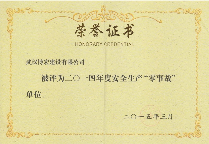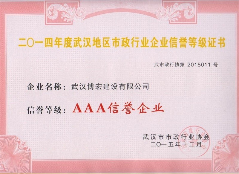 2014年度武漢地區(qū)市政行政企業(yè)信譽(yù)等級(jí)證書
