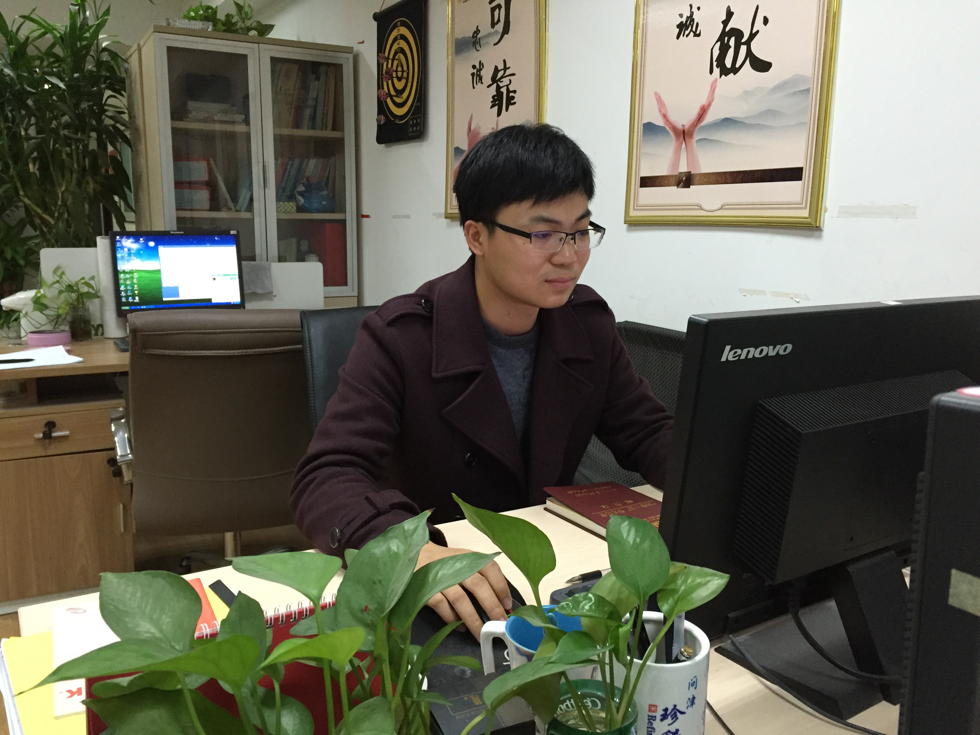 一個瘦高的90后小伙子,初見時,他正忙于工作,在電腦桌前敲打著什么,正擔心會打擾他時,他卻已經(jīng)熱情地招呼著我們坐下,當?shù)弥覀兿胍稍L他時,他顯得既有點靦腆,又有點驚喜,他就是今天我們的主人公——周昌文。