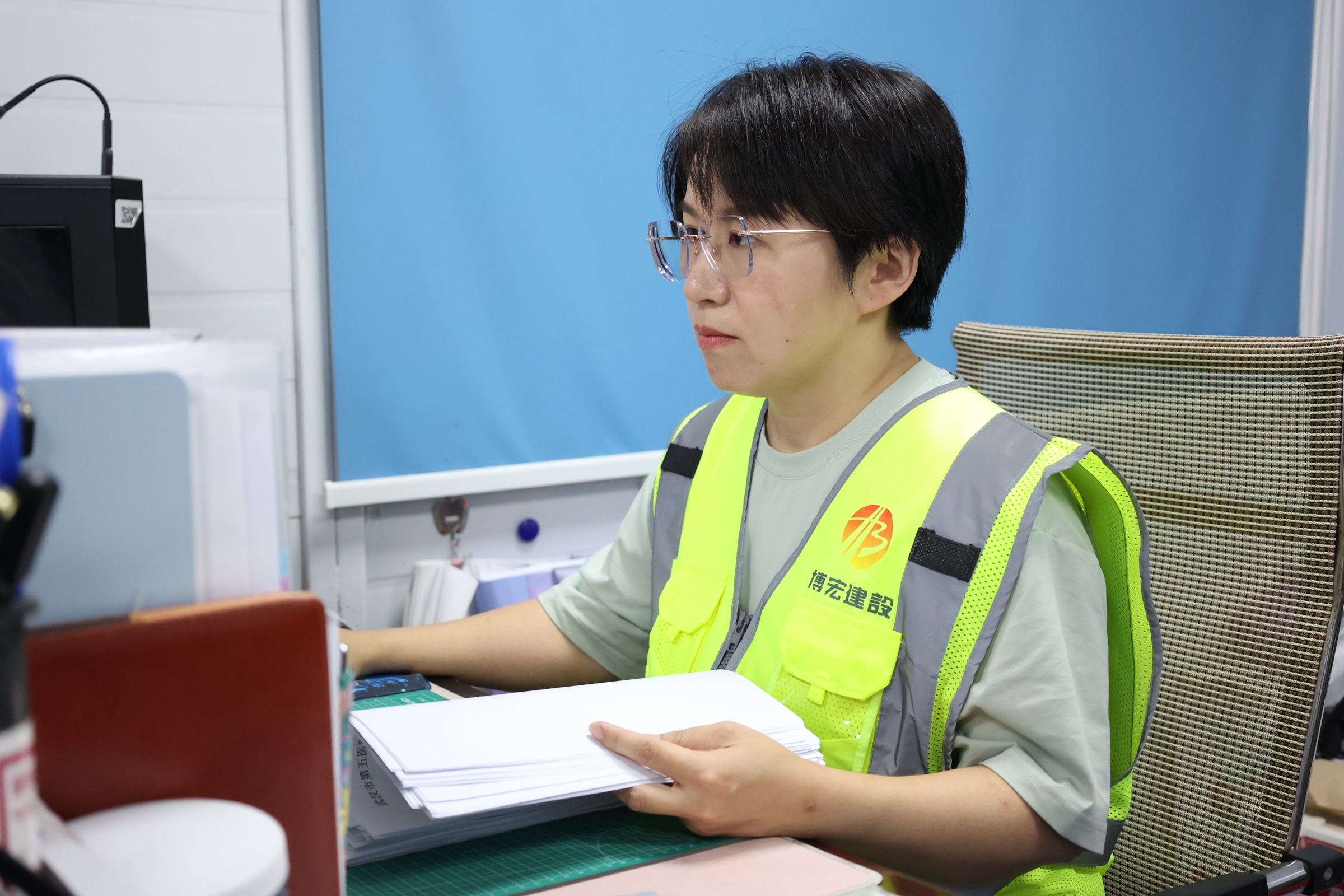 為了讓每一份資料都經(jīng)得起推敲,胡家珍除了每天在資料中穿梭,還經(jīng)常要下項(xiàng)目與一線(xiàn)人員溝通,了解施工的整體概況,掌握項(xiàng)目建設(shè)進(jìn)展的實(shí)際情況,她舉例說(shuō)到,“打混凝土之前我們要做什么,打了混凝土之后要干什么,現(xiàn)場(chǎng)工序的申報(bào)、現(xiàn)場(chǎng)實(shí)驗(yàn)、送檢,每一步工作都要提前安排好,確保資料和現(xiàn)場(chǎng)同步。”只有在累積和充分掌握現(xiàn)場(chǎng)實(shí)際和相應(yīng)的作業(yè)基礎(chǔ)知識(shí)后,才能把資料的編制工作做得得心應(yīng)手。